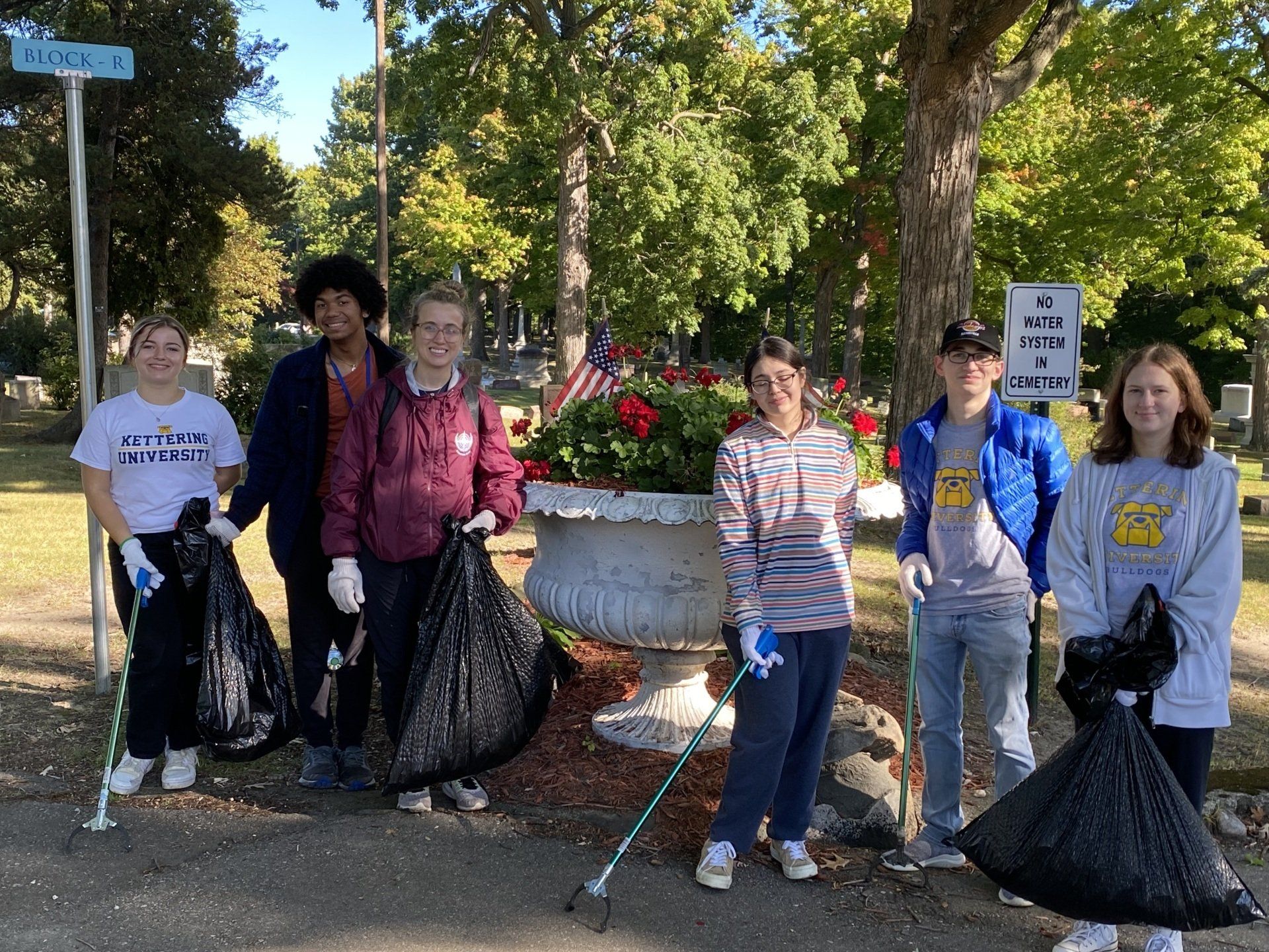 As the fall season arrived, we cleaned up the cemetery grounds and made preparations for the winter on Saturday, October 1 from 9-11 a.m. A special thanks to Kettering University for partnering with Glenwood as a site for the incoming student community orientation and volunteer time. We hauled away dozens of trash bags and tons of debris, and the students learned a bit about this history of this amazing place including former university leaders and faculty buried here.